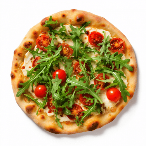 Sauce tomate (tomates italiennes), olives, poivrons, champignons, coeurs d'artichauts, tomates fraîches